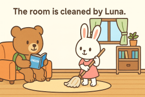 The room is cleaned by Mary. 部屋がメアリーに掃除される |